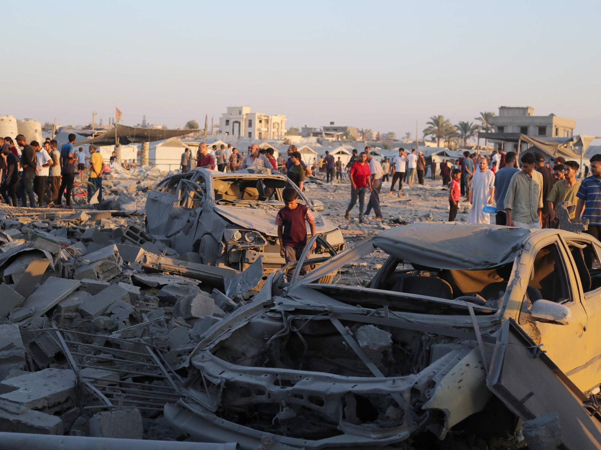 واستشهد 6 فلسطينيين في قصف إسرائيلي استهدف خيمة تؤوي نازحين لعائلة أبو طعمية في منطقة المواصي غرب مدينة خان يونس.