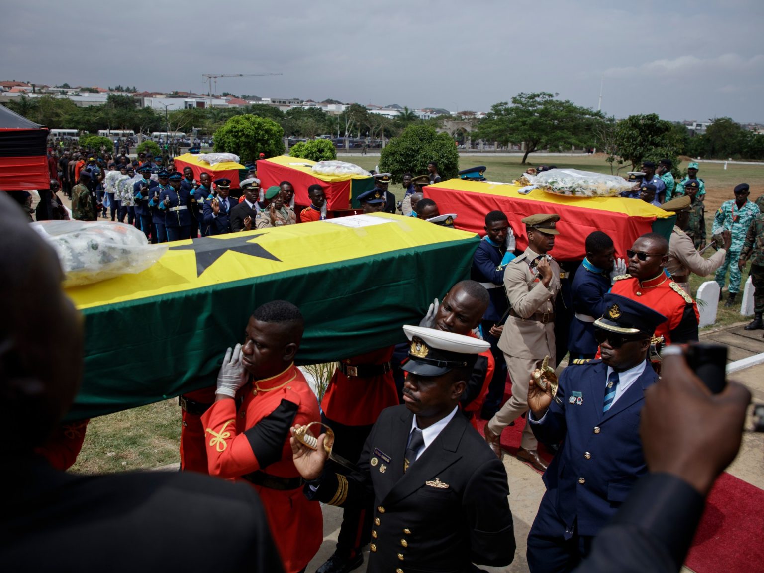 أقامت السلطات في غانا مراسم وطنية لتشييع جنازة 8 أشخاص، بينهم وزيران، في الحكومة لقوا حتفهم في تحطم مروحة عسكرية كانت تقلهم بداية الشهر الجاري بين العاصمة أكرا وإحدى الولايات الداخلية.