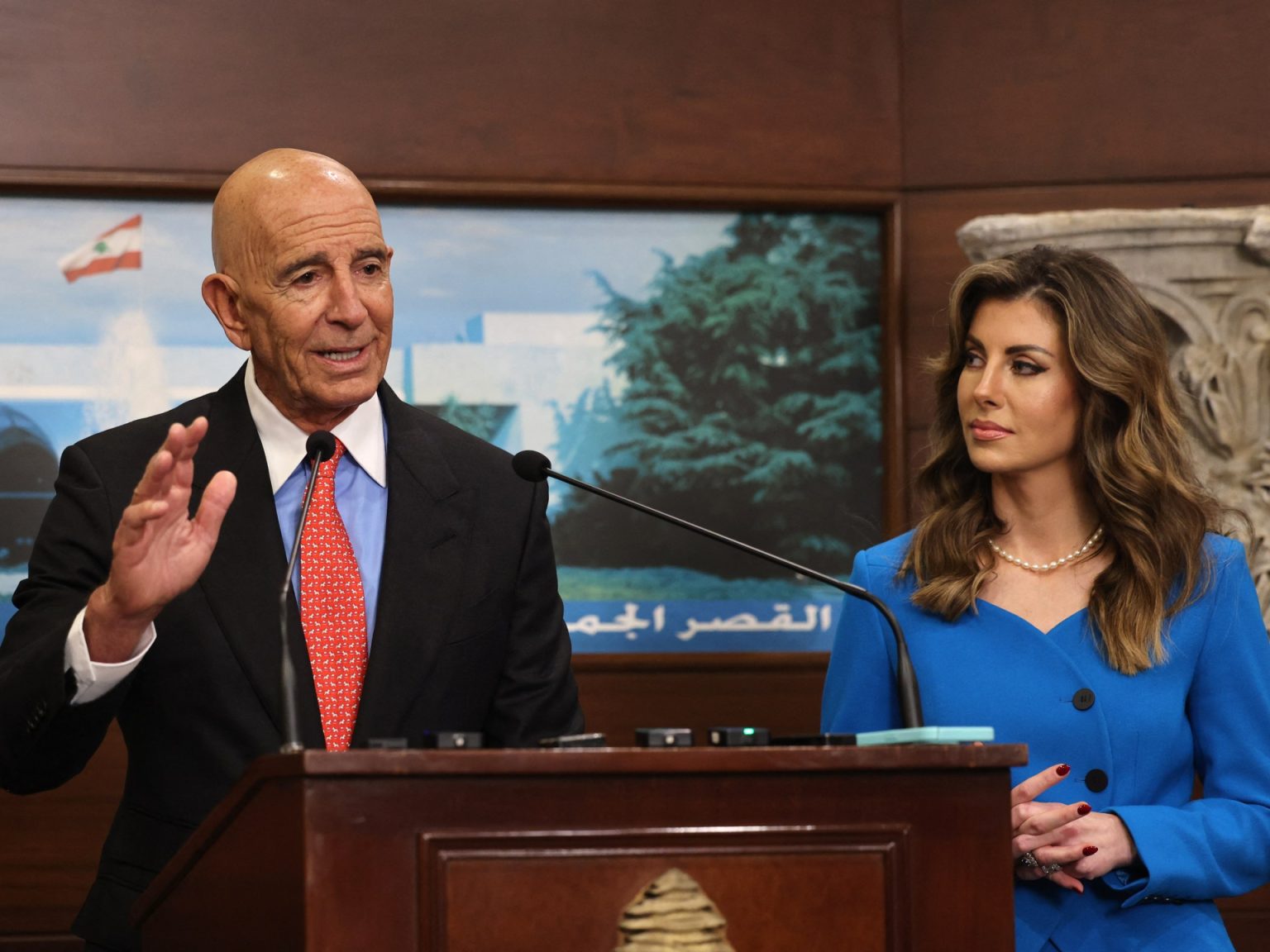 كان هذا تعقيب المبعوث الأميركي إلى سوريا ولبنان توم براك في قصر بعبدا ببيروت اليوم الثلاثاء، أثناء مؤتمره الصحفي عقب لقائه رئيس الجمهورية جوزيف عون، وذلك بعدما تداخلت أصوات بعض الصحفيين أثناء طرح الأسئلة.