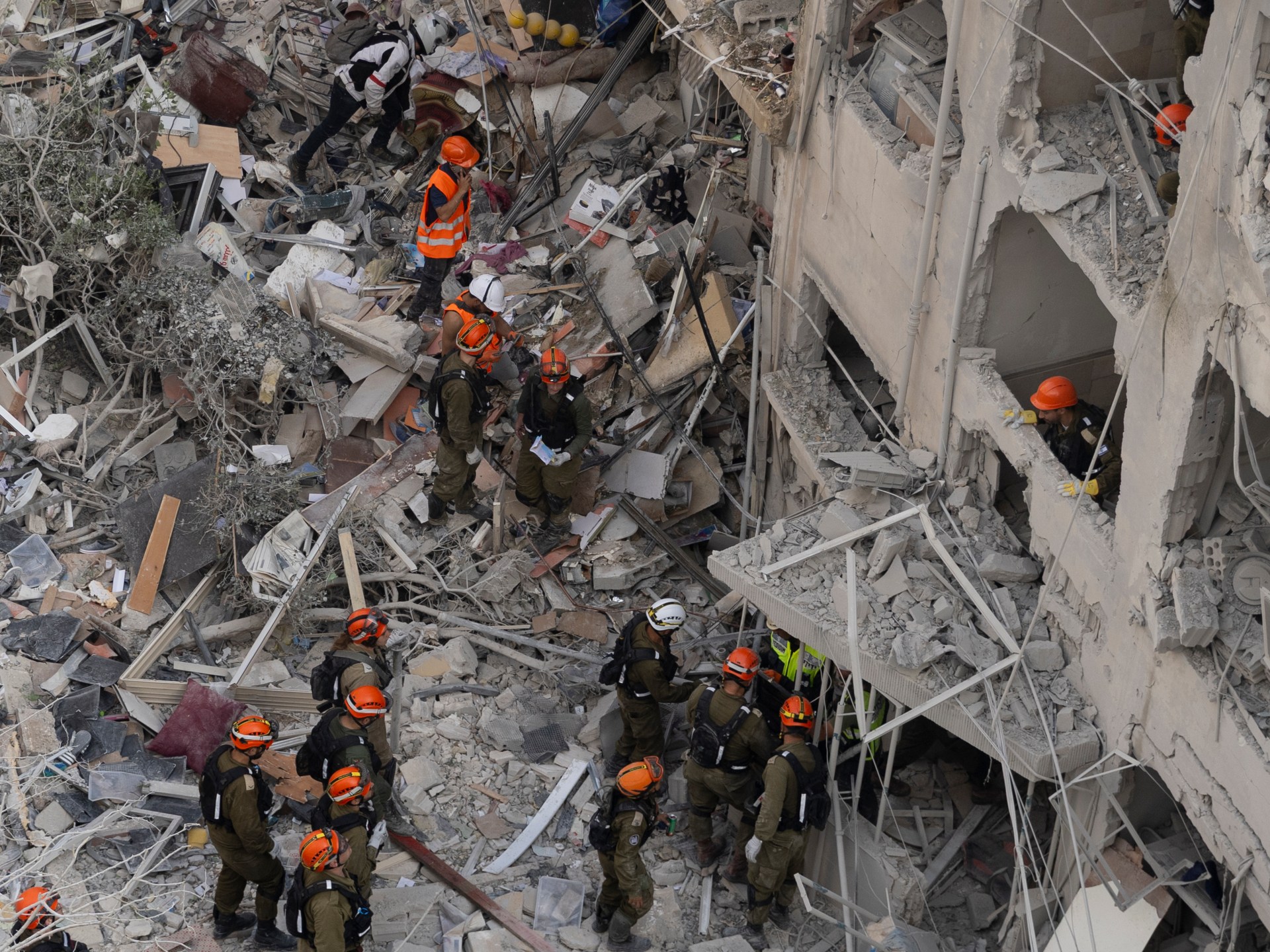 عملية البحث عن ناجين في مبان دمرت بصواريخ إيرانية في مدينة بات يام جنوب تل أبيب (غيتي إيميجز)