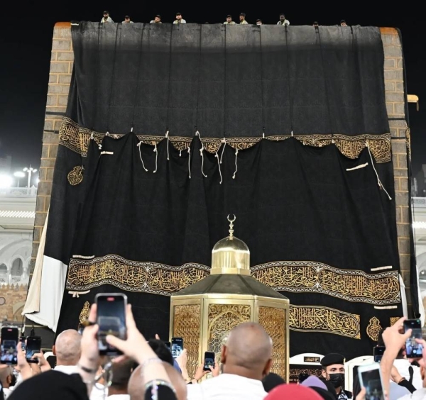 مكة – أكملت السلطة العامة لرعاية شؤون المسجد الكبير ومسجد النبي يوم الخميس الحفل المعتاد السنوي لاستبدال كيسوا (غلاف) الكعابا المقدسة ، واستمروا في تقليد الرعاية الذي يمتد على مدى 100 عام.