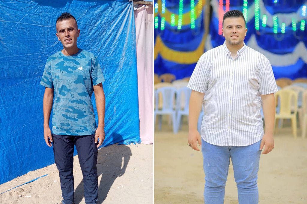 وكتب أحد المغردين تحت صورته: “قبل حرب الإبادة كان وزني 110 كيلوغرامات، واليوم وزني 57 كيلوغراما فقط، أعاني من دوار دائم وآلام في جسمي، ولا أعلم ما الذي سيبقى مني إن استمر الوضع على حاله”.