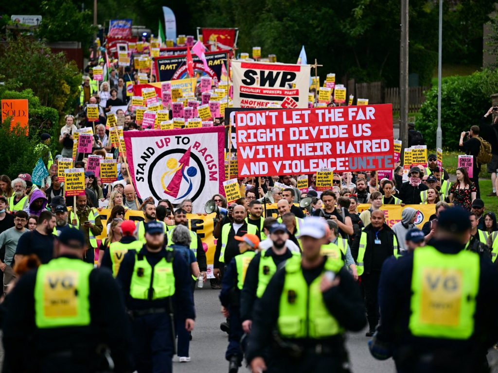 تظاهر المئات ضد الهجرة في بلدة تشهد سلسلة من الاحتجاجات شمالي شرقي لندن أمس الأحد، في ظل إجراءات أمنية مشددة بعد الاضطرابات التي شهدتها البلاد خلال تظاهرات سابقة مناهضة للمهاجرين.
