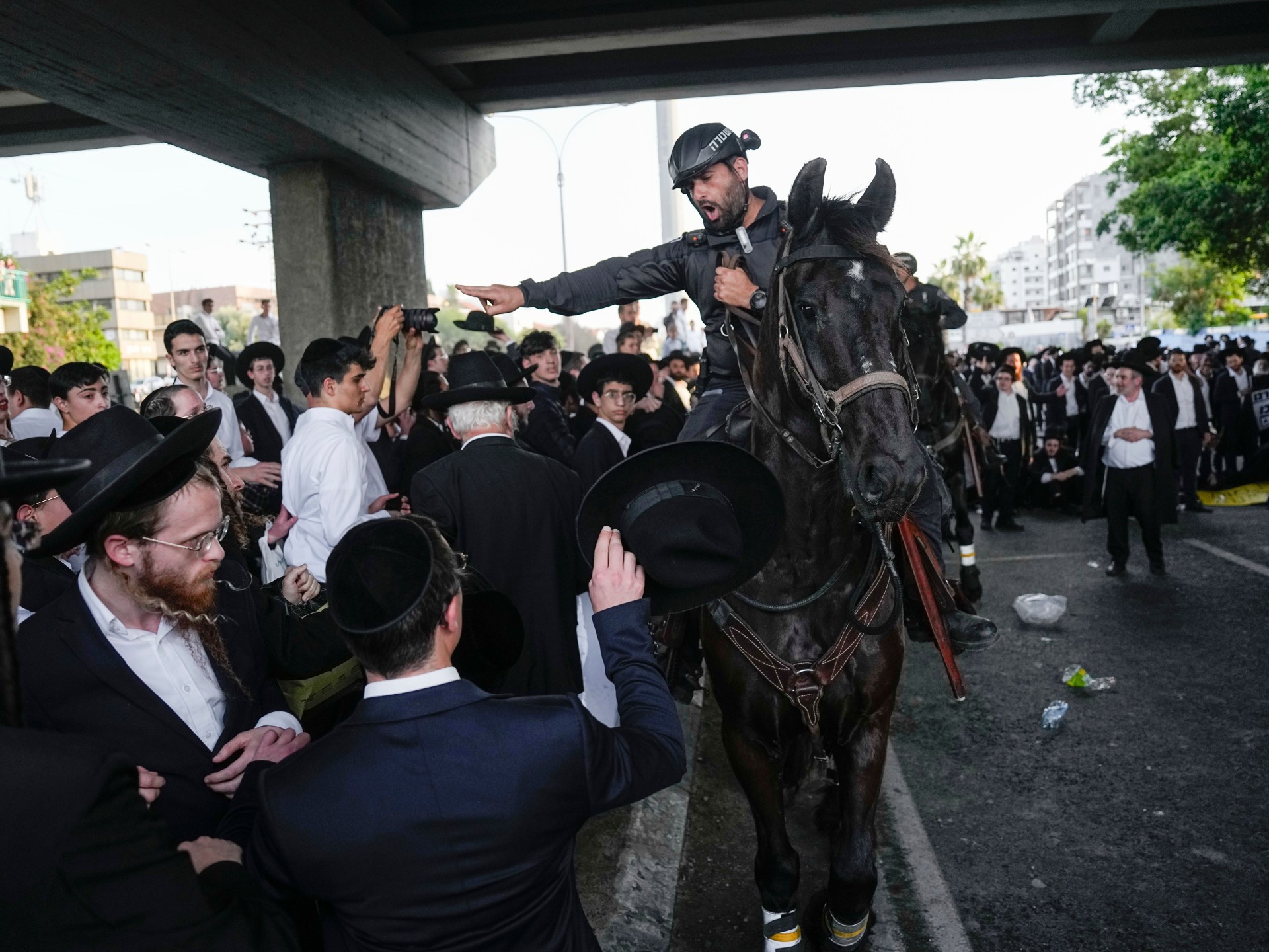نظم متدينون من يهود “الحريديم” -اليوم الخميس- مسيرة احتجاجية بالقدس الغربية ضد تجنيد المتدينين بالجيش الإسرائيلي.