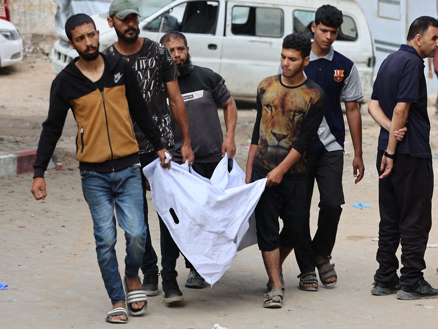 epaselect epa12181960 Palestinians carry the body of a man who was killed by Israeli army fire while trying to obtain flour, west of Jabalia on 17 June, 2025, after humanitarian aid trucks entered the northern Gaza Strip through the Israeli-controlled Zikim crossing, northwest of Gaza City. EPA-EFE/HAITHAM IMAD