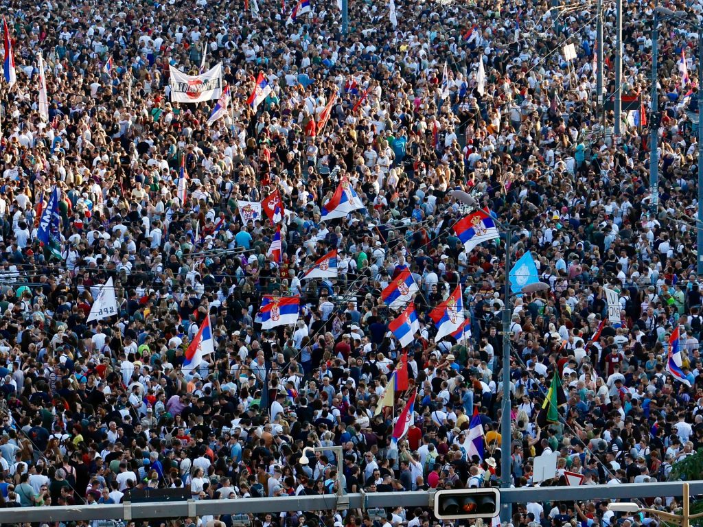 تظاهر عشرات الآلاف من الطلاب والمحتجين المناهضين للفساد في صربيا اليوم السبت، للمطالبة بإجراء انتخابات مبكرة وإنهاء حكم الرئيس ألكسندر فوتشيتش المستمر منذ 12 عاما.