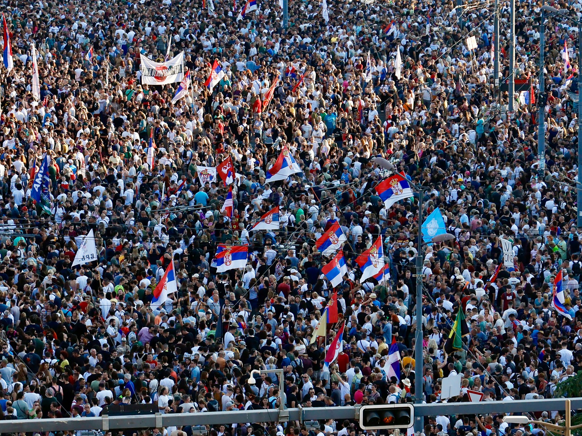 ورفض فوتشيتش في وقت سابق إجراء انتخابات مبكرة، وذكر اليوم السبت أن “قوى أجنبية” -لم يحددها- تقف وراء الاحتجاج، مطالبا الشرطة بضبط النفس، لكنه حذر من أن السلطات لن تتهاون مع العنف.