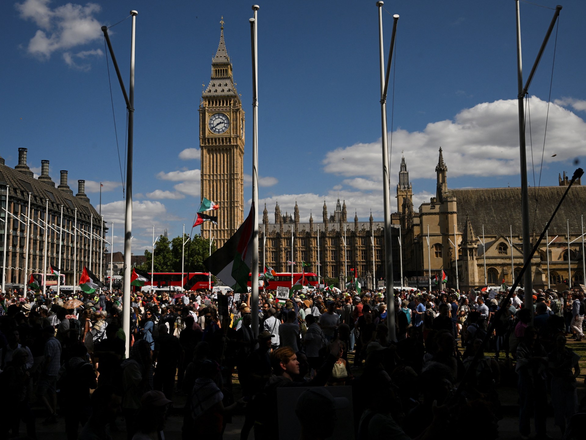 كما خرجت في العاصمة البريطانية لندن مظاهرة حاشدة شارك فيها عشرات الآلاف للمطالبة بفرض عقوبات على الحكومة الإسرائيلية ووقف تصدير السلاح لها.