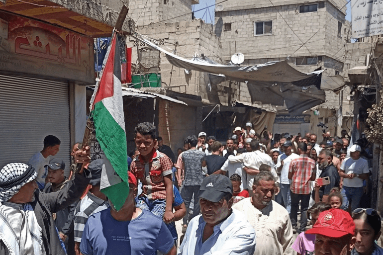 ورفع المشاركون في المظاهرات أعلام فلسطين وسوريا، ورددوا هتافات مناوئة للتجويع، ومطالبة بفتح المعابر وإدخال المساعدات ووقف الإبادة الإسرائيلية.