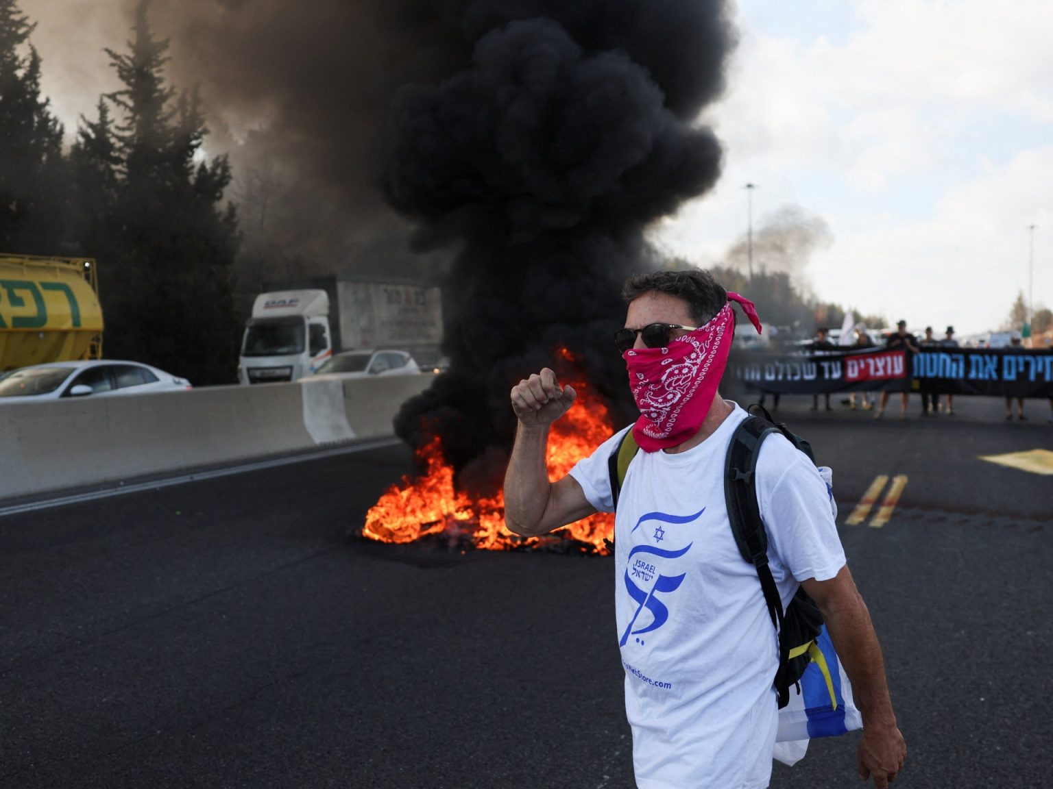 Protesters have shut down Highway 1, the main road between Jerusalem and Tel Aviv.