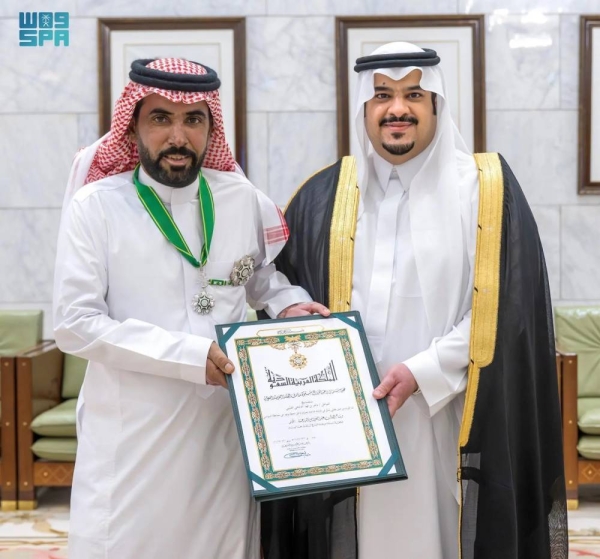 تم تقديم الميدالية في تنفيذ توجيه الوصي على مساجد المساجد المقدس سلمان واستند إلى توصية من ولي العهد ورئيس الوزراء محمد بن سلمان تقديراً لشجاعته في إنقاذ حياة العديد من الناس من كارثة محتملة في محطة وقود في الحكامة الوادم.