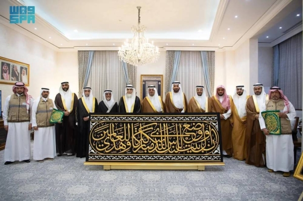 مكة – نيابة عن الوصي من المساجدين المقدس الملك سلمان ، نائب إمير منطقة مكة ونائب رئيس اللجنة الدائمة لهاج وأمير سود بن ميشال ، سلمت غلاف كاكابا الجديد (Kiswa) إلى عبد الماليك بن تاهع آيبي ، حارس المرمى.