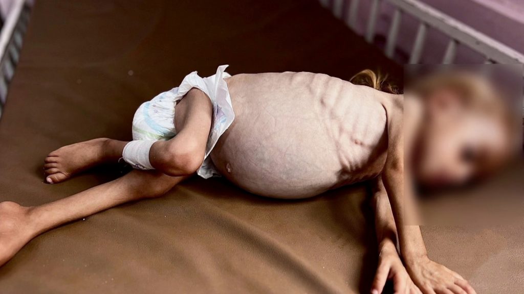 يظهر أطفال غزة يوميا على هيئة أجساد نحيلة هزيلة، بعضهم أشبه بهياكل عظمية، مع انتفاخ يظهر بطونهم “ممتلئة” جراء مرض مرتبط بسوء التغذية، وينتشر بوتيرة متسارعة عند الأطفال، مسجلا أرقاما متزايدة يوميا.