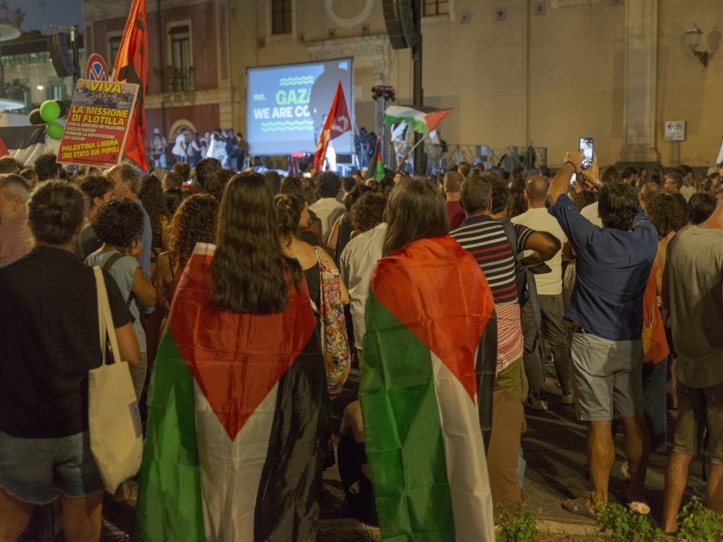 وتجمع المتظاهرون، أمس الأربعاء، في ميناء كاتانيا، جنوب إيطاليا، نقطة التقاء القوارب المنضمة إلى الأسطول من إيطاليا، قبل أن ينطلقوا في مسيرة نحو مركز المدينة، رافعين الأعلام الفلسطينية ولافتات كتب عليها شعارات داعمة لفلسطين والأسطول.