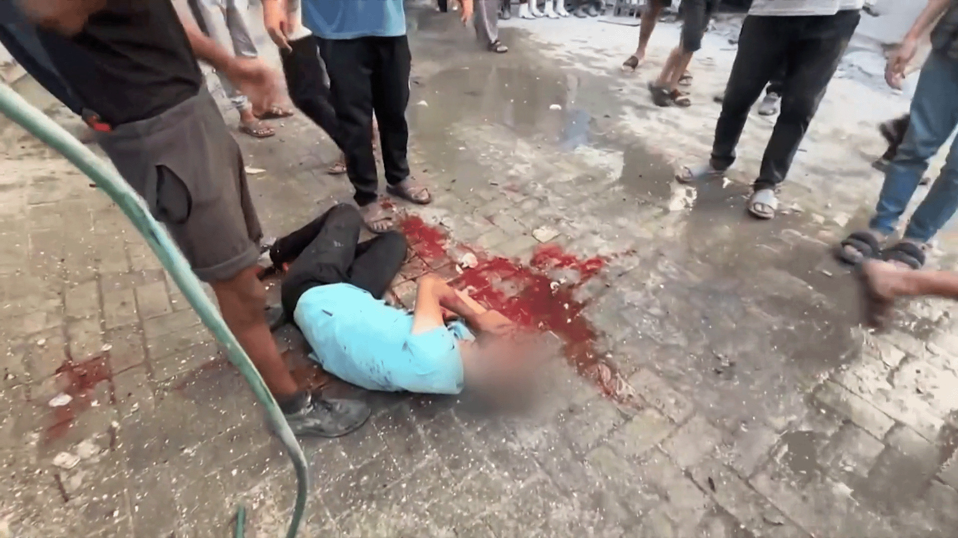 وأظهرت مشاهد حصرية بثتها الجزيرة عددا من الشهداء والمصابين ملقون على الأرض والدماء تسيل في كل مكان، في حين يحاول الأهالي نقلهم بوسائل بدائية متواضعة.