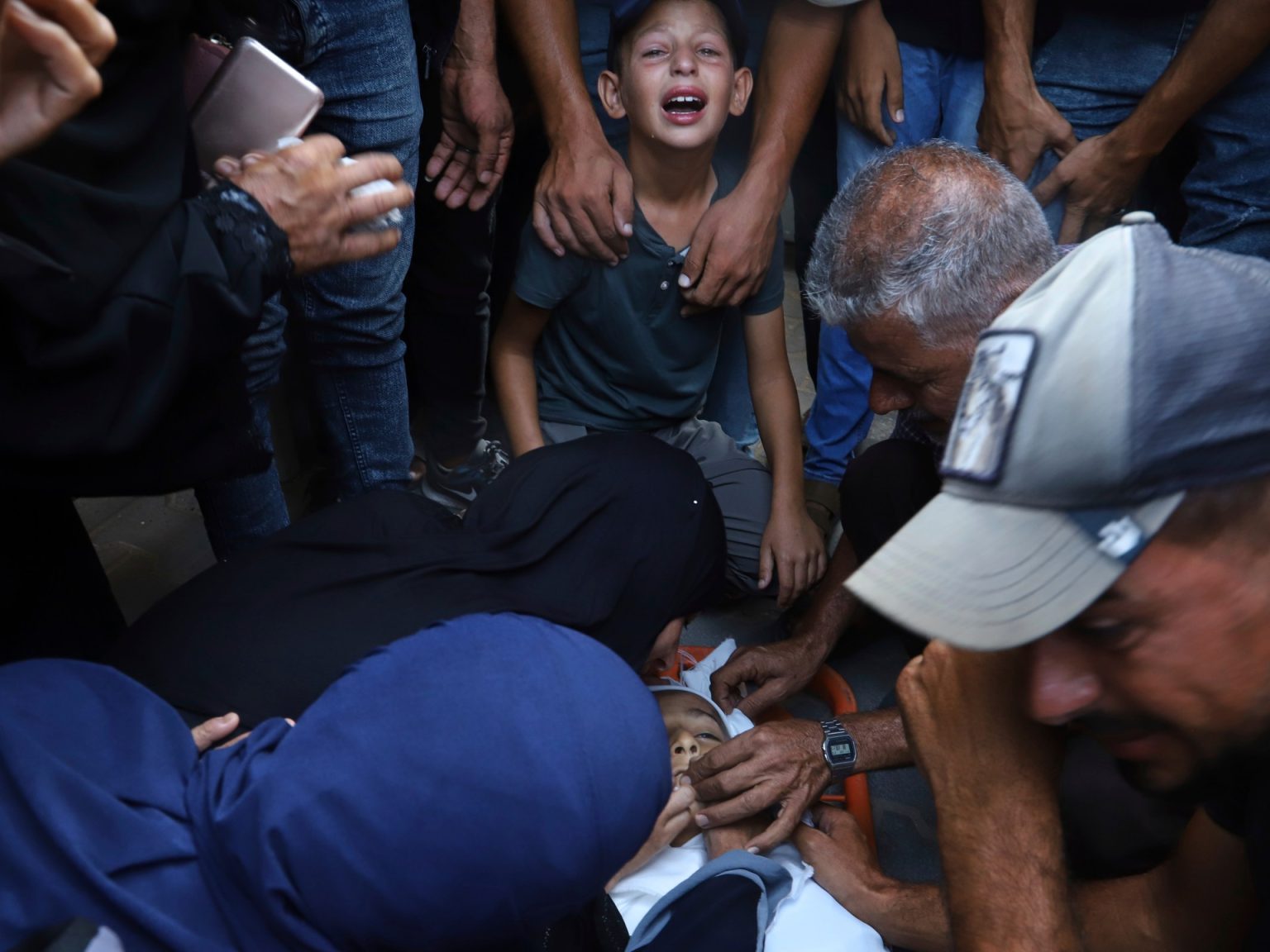 ووسط مدينة غزة، شيّع فلسطينيون 20 شهيدا، بينهم أطفال ونساء، في قصف منزل بحي الكرامة وشقة سكنية لنازحين بالقرب من شارع الجلاء.