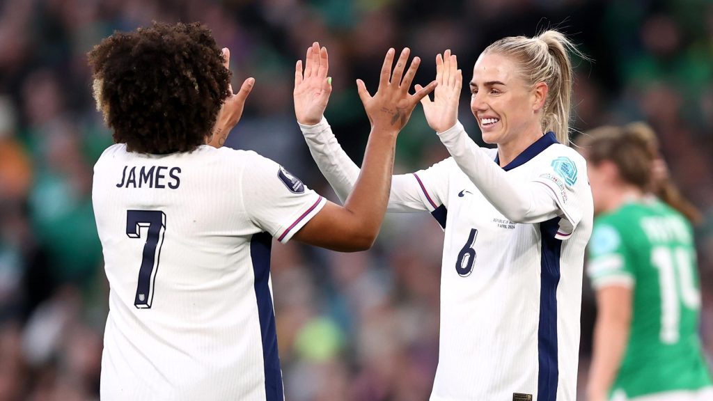 “هدفا لورين جيمس وأليكس جرينوود منحا إنجلترا فوزها الأول في تصفيات بطولة أمم أوروبا 2025 بعد فوزها على جمهورية أيرلندا 2-0 في دبلن. وهذا يتركهم في المركز الثاني في المجموعة بعد مباراتين. لقد كانت ليلة ناجحة للمنتخب. سجلت الأمم المحلية مثل ويلز واسكتلندا وأيرلندا الشمالية أيضًا انتصارات لتظل دون هزيمة في حملاتها المؤهلة.