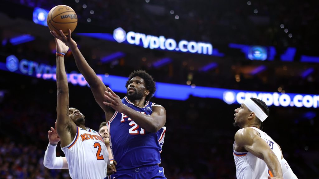 تغلب جويل إمبييد على مشكلة في الركبة وتشخيصه الأخير لشلل بيل، ليقود فيلادلفيا سفنتي سيكسرز للفوز 125-114 على نيويورك نيكس في مباراتهم الفاصلة الثالثة.