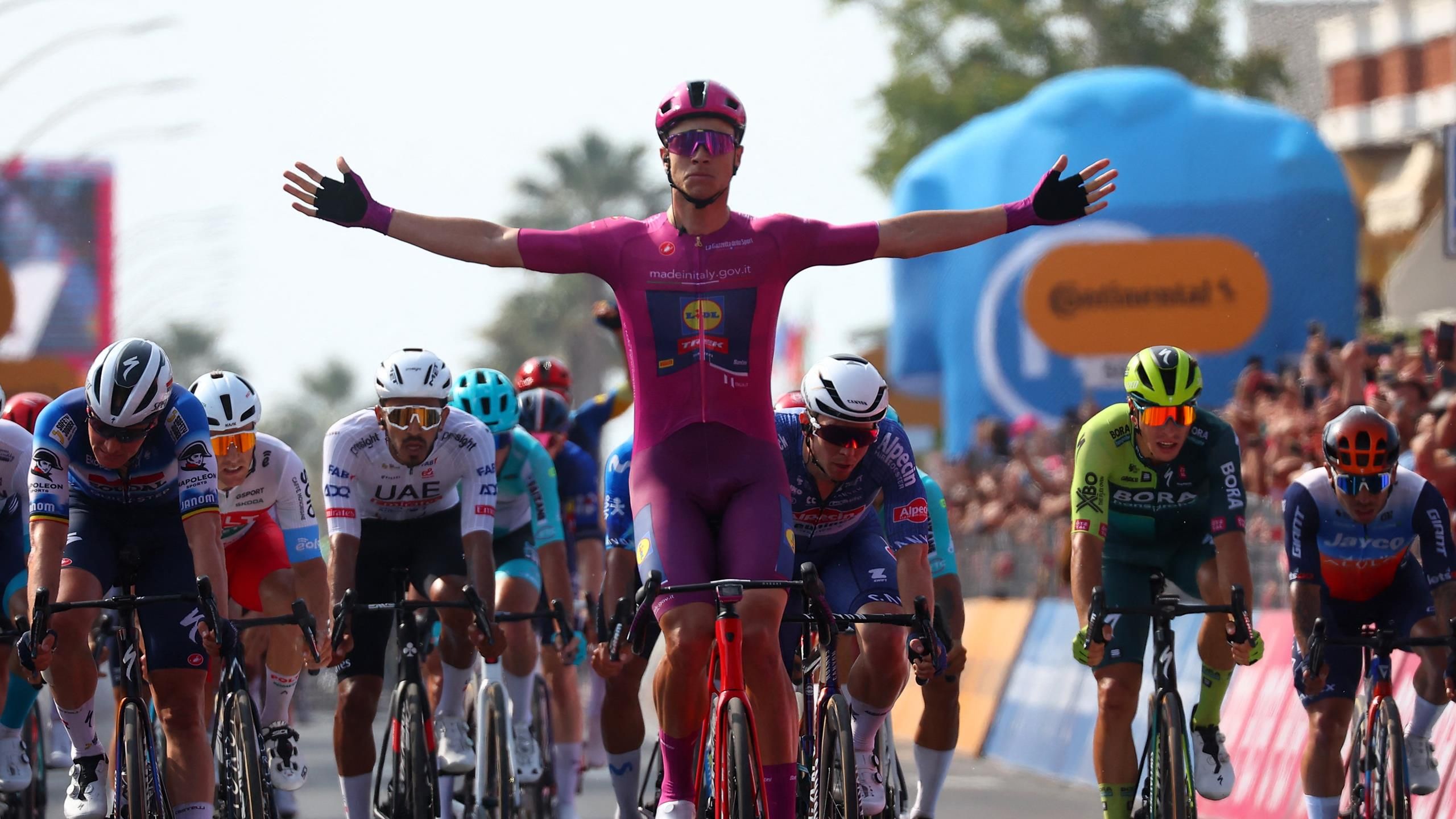 بعد مواجهة فوضوية ومرهقة أمام فرانكافيلا آل ماري، أثبت الإيطالي مرة أخرى أنه الأقوى على الطريق الذي يبلغ طوله 207 كيلومترات من فويانو دي فالفورتوري.