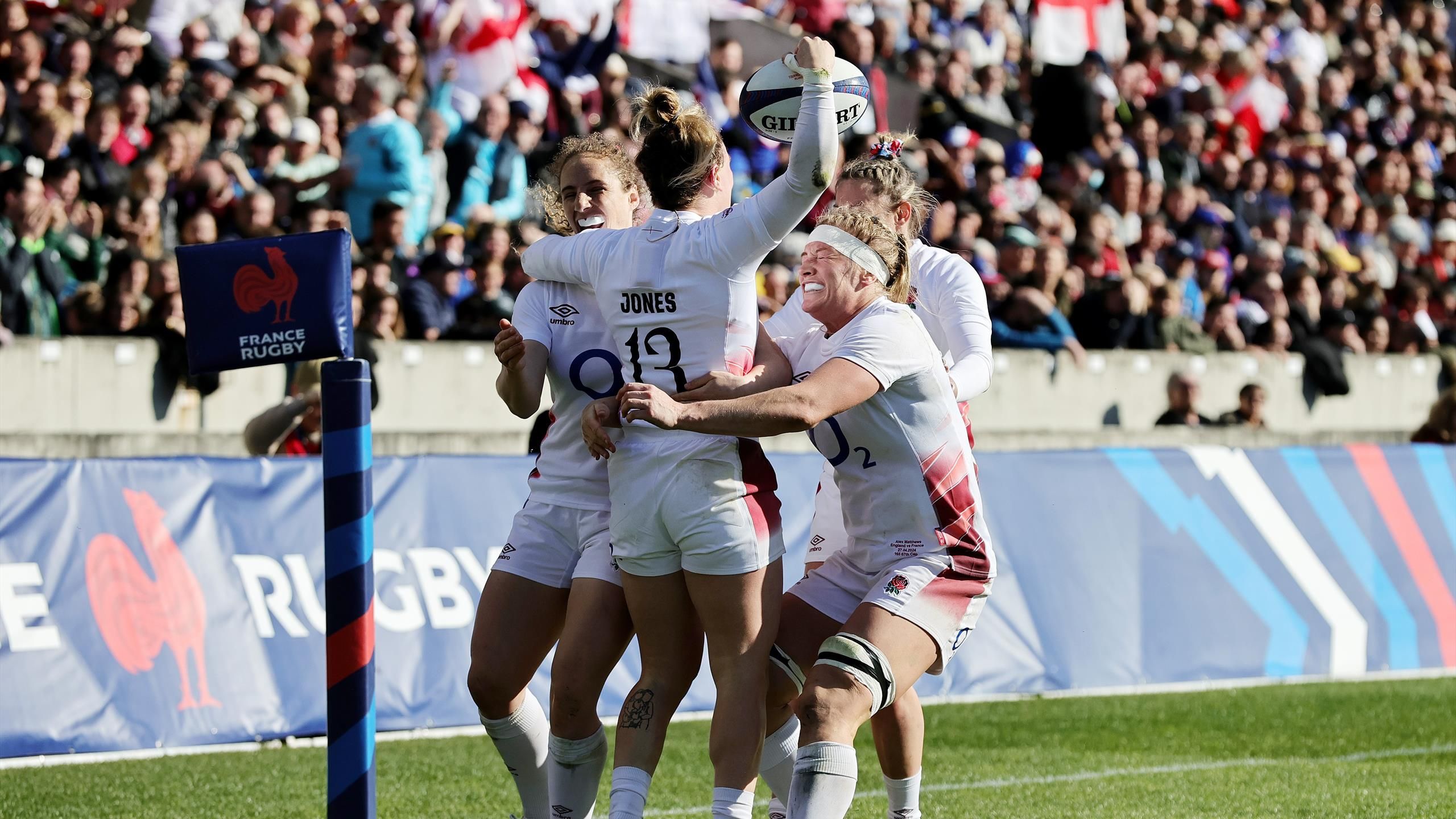 “انتهت بطولة الأمم الستة الأولى لجون ميتشل كمدرب لإنجلترا بفوز فريق Red Roses بلقبه الثالث على التوالي في البطولات الأربع الكبرى حيث حقق فوزًا بنتيجة 42-21 على فرنسا أمام حشد يتسع لـ 28000 متفرج في بوردو. كان عمل إنجلترا انتهى الشوط الأول بتقدم 35-14، وأتاح طرد آسيا الخلفاوي في الدقيقة 43 شوطًا ثانيًا مريحًا ولكن منخفض الأهداف.