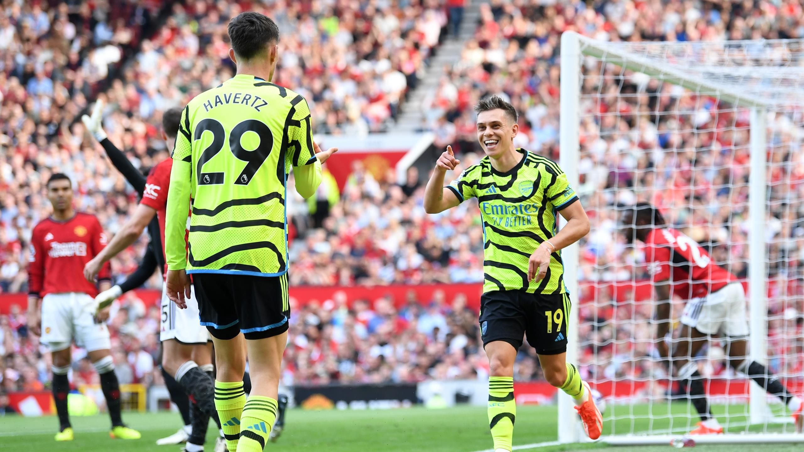 هدف 20! مان يونايتد 0-1 آرسنال (تروسارد) يلعب كاسيميرو على أرسنال بينما يندفع هافرتز إلى الخط الجانبي قبل أن يمرر عرضية إلى تروسارد ليسدد الكرة في الشباك. كل شيء سهل للغاية بالنسبة للزوار الذين تقدموا 1-0. المتحدة في جميع أنحاء العرض.