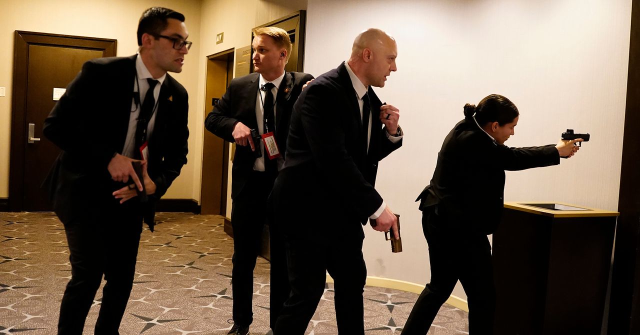 أفاد شهود عيان أنهم سمعوا عدة طلقات خارج الغرفة، وسرعان ما قام العملاء بنقل ترامب ونائبه جيه دي فانس خارج المسرح. أصيب أحد العملاء لكنه كان محميًا بسترته المضادة للرصاص. وقال ترامب في وقت لاحق للصحفيين إن العميل لم يصب بأذى.