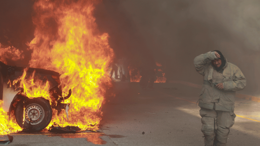 تشيلبانسينجو ، المكسيك (أ ف ب) – أضرم المتظاهرون في جنوب المكسيك النار في مبنى حكومة الولاية يوم الاثنين وأضرموا النار في ما لا يقل عن اثنتي عشرة سيارة في ساحة انتظار السيارات.