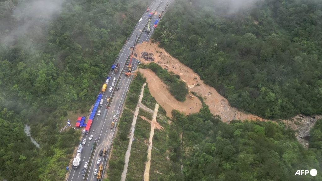 وأظهرت لقطات بثتها قناة CCTV الحكومية حفارات تحفر في التلال الموحلة أسفل الطريق المنهار.