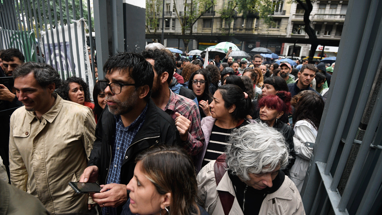 اقتحم المئات من الموظفين المتحدين – بعضهم أُبلغ بإنهاء خدمتهم الأسبوع الماضي والبعض الآخر قبل ذلك – أماكن عملهم في بوينس آيرس والمدن المجاورة يوم الأربعاء، وقرعوا الطبول، وانتقدوا فصلهم باعتباره غير عادل، وطالبوا بإعادتهم إلى وظائفهم.