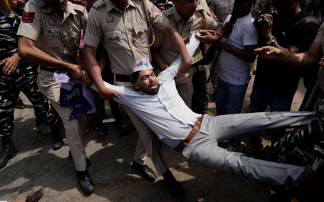 اعتقلت الشرطة الهندية العشرات من متظاهري المعارضة اليوم الثلاثاء لمنعهم من التوجه إلى مقر إقامة رئيس الوزراء ناريندرا مودي للمطالبة بالإفراج عن زعيمهم ومسؤول منتخب كبير في نيودلهي اعتقل الأسبوع الماضي في قضية رشوة.