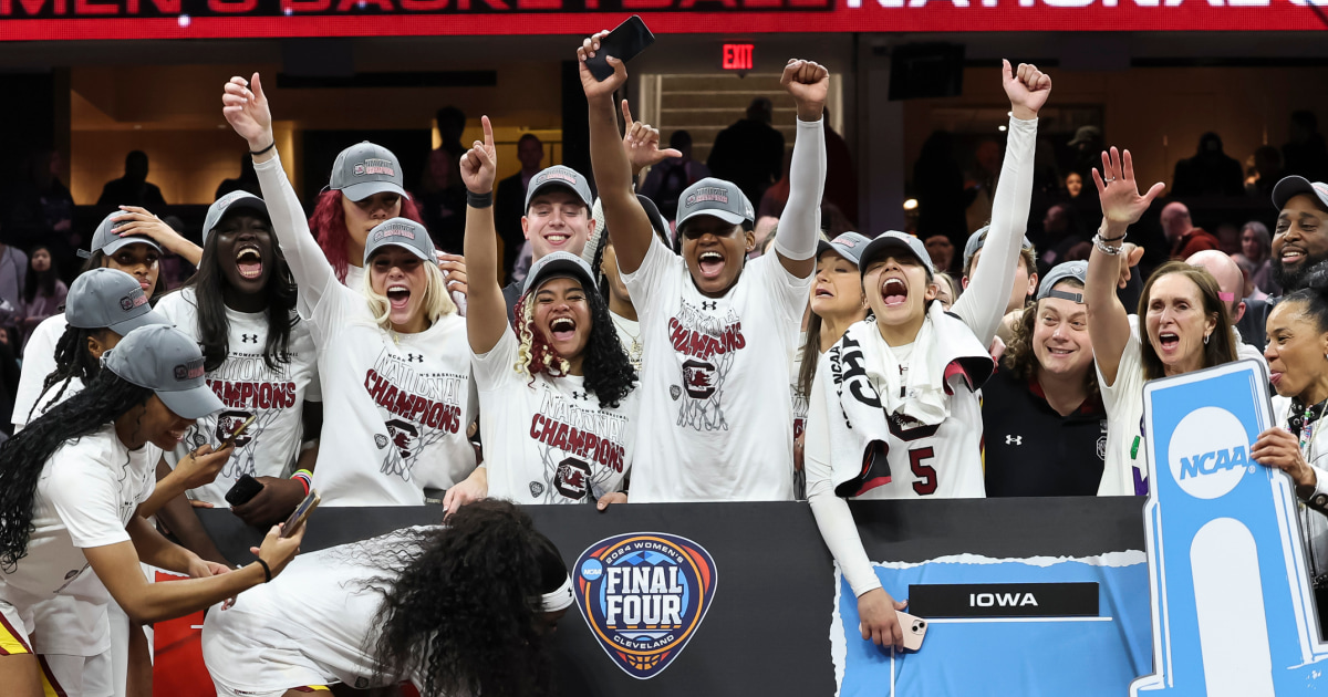 انسحب فريق South Carolina Gamecocks من فريق من الأطواق السعيدة بعد فوزهم الحاسم على Iowa Hawkeyes في بطولة NCAA يوم الأحد مما عزز موسمًا تاريخيًا خاليًا من الهزائم.