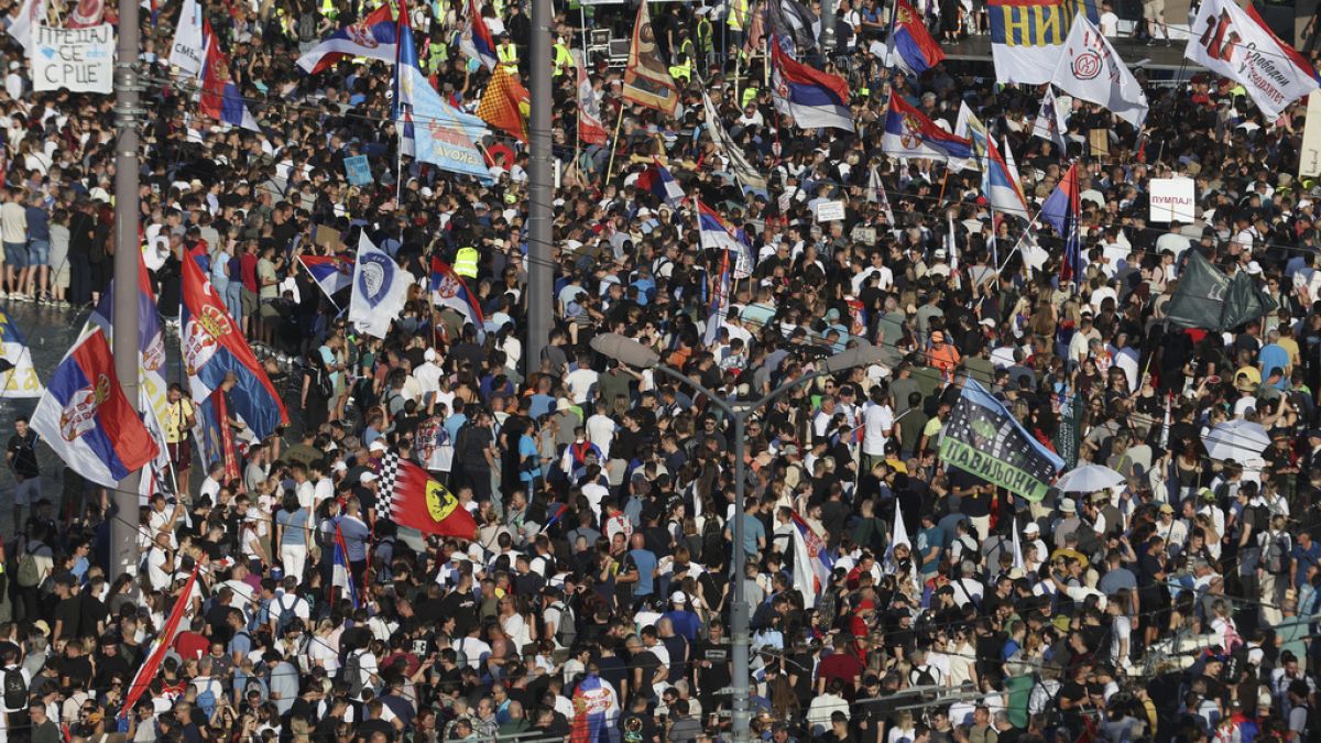 اجتمع عشرات الآلاف من المتظاهرين المناهضين للحكومة التي يقودها الطلاب في العاصمة الصربية في بلغراد يوم السبت ، ودعا إلى الانتخابات البرلمانية المبكرة بعد ما يقرب من ثمانية أشهر من الاحتجاجات.