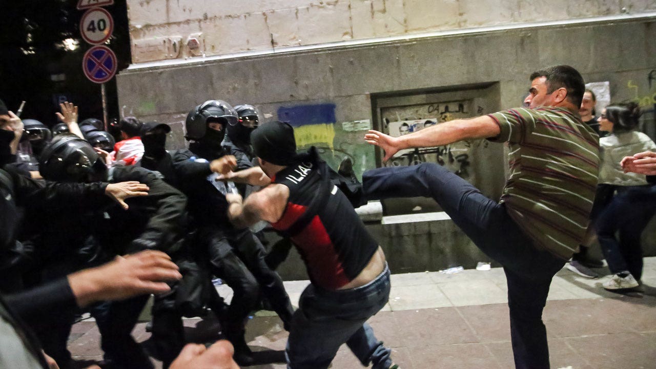 ألقي القبض على عشرات الأشخاص في جورجيا بعد أن استخدمت الشرطة في العاصمة الغاز المسيل للدموع وخراطيم المياه لتفريق المتظاهرين الذين احتشدوا خارج البرلمان للاحتجاج على مشروع قانون مثير للجدل يقولون إنه يحد من حرية الإعلام.