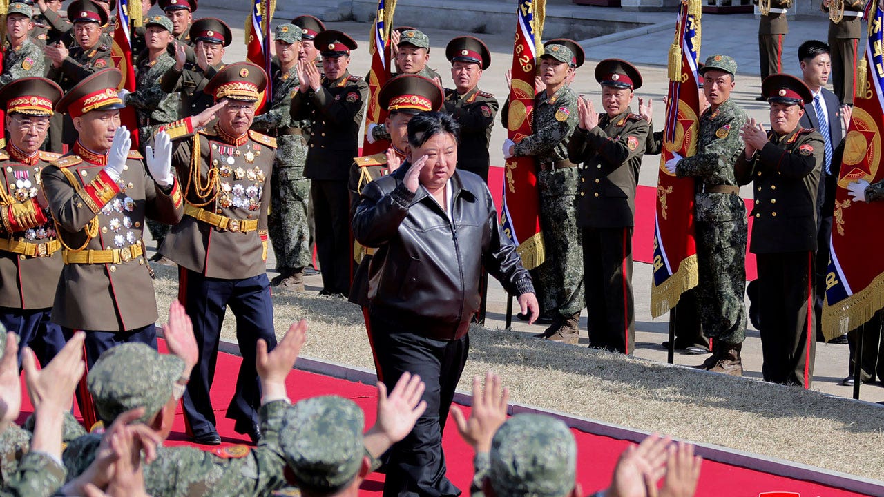 وأظهرت الصور التي نشرتها وسائل الإعلام الرسمية في كوريا الشمالية كيم وهو يتحدث مع ضباط عسكريين في نقطة مراقبة ودبابات ترفع أعلام كوريا الشمالية تتدحرج عبر التراب، وتحمل واحدة على الأقل من المركبات لافتة كتب عليها: “إبادة الغزاة الأمريكيين الذين هم أعداء لدودون للولايات المتحدة”. الكوريين!”
