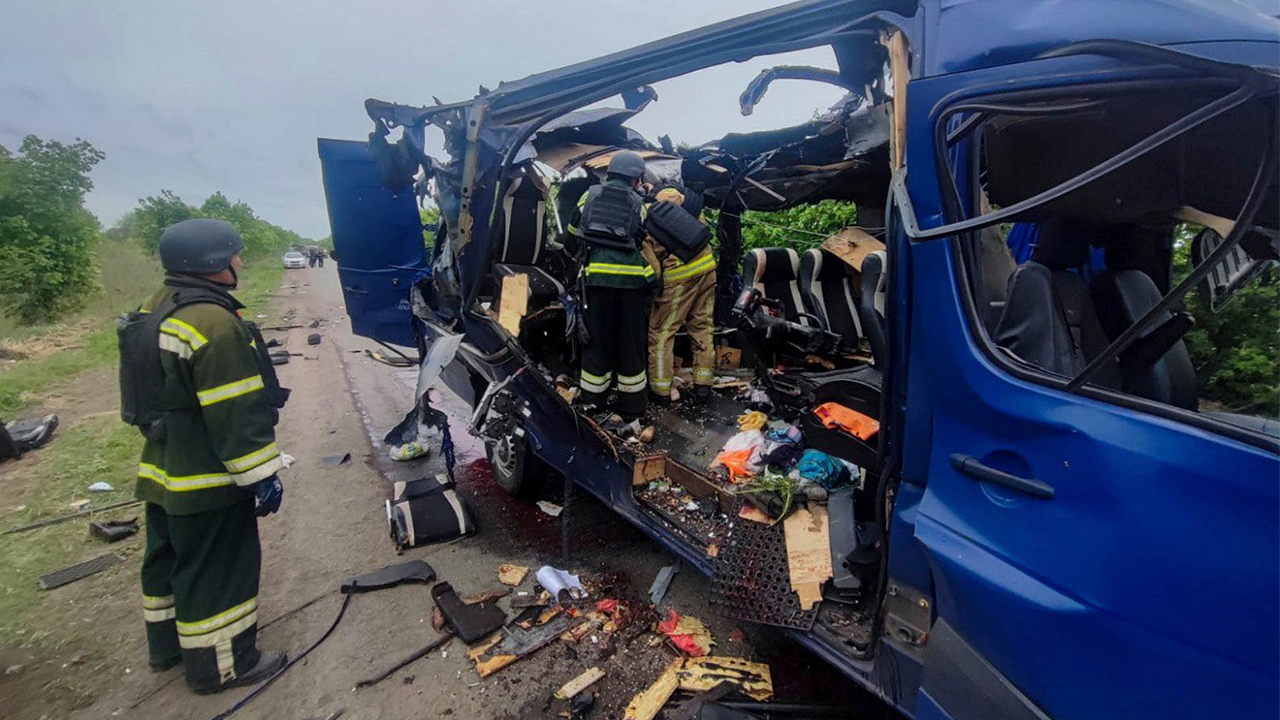 ضربت إضراب طائرة بدون طيار روسية حافلة ركاب في شمال شرق أوكرانيا يوم السبت ، مما أسفر عن مقتل تسعة أشخاص وأصيب أربعة آخرين ، كما يزعم المسؤولون الأوكرانيون.